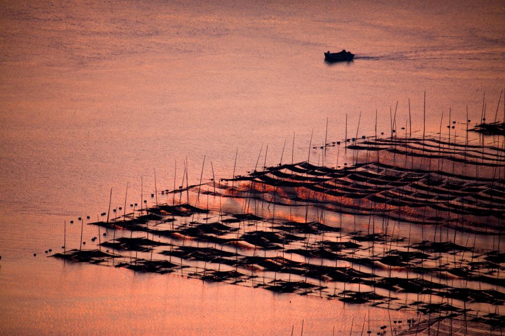 去霞浦,你不一定需要很牛的镜头,都是长焦是必须的,300mm的只是算起步。海面上的细节需要你去一点点的勾勒。早晨的日出打在海面上,照出一道强烈的金光,小船刚好经过,船尾拖曳金色的尾巴,流光溢彩。