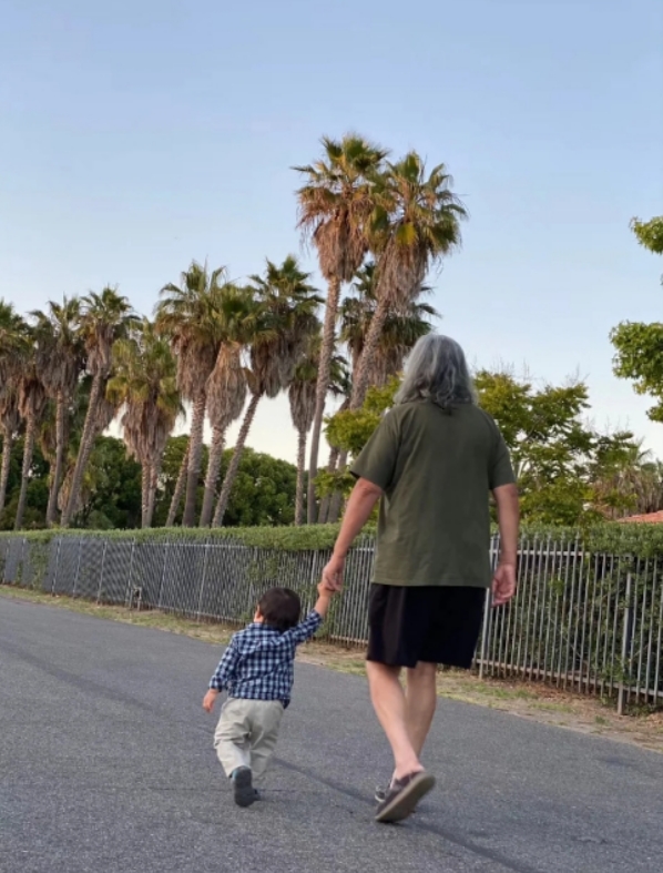 現在的他還可以把萌娃架在自己肩頭行走如常。