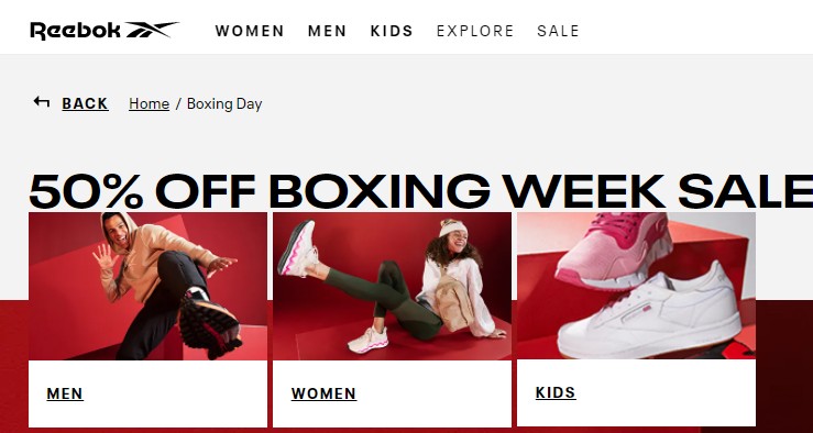 - Reebok ----節禮周促銷,享受額外50%的折扣。