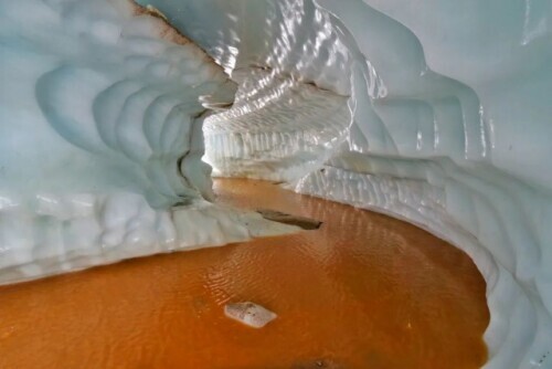 王相軍說,很多冰川都是這樣從內部垮塌的。最開始,太陽曬化了表面,水滲入冰川底部。融水越積越多,逐漸從水窪變成了隧道壹樣的地下河,直到最後冰川失穩、垮塌。
