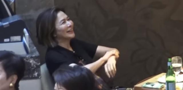 當天,關之琳與這位年輕帥哥在餐桌上相聊甚歡,她身體朝後仰天開懷大笑,絲毫不顧形象做遮掩,就連臉上的皺紋都清晰可見,不過她看起來心情非常好。