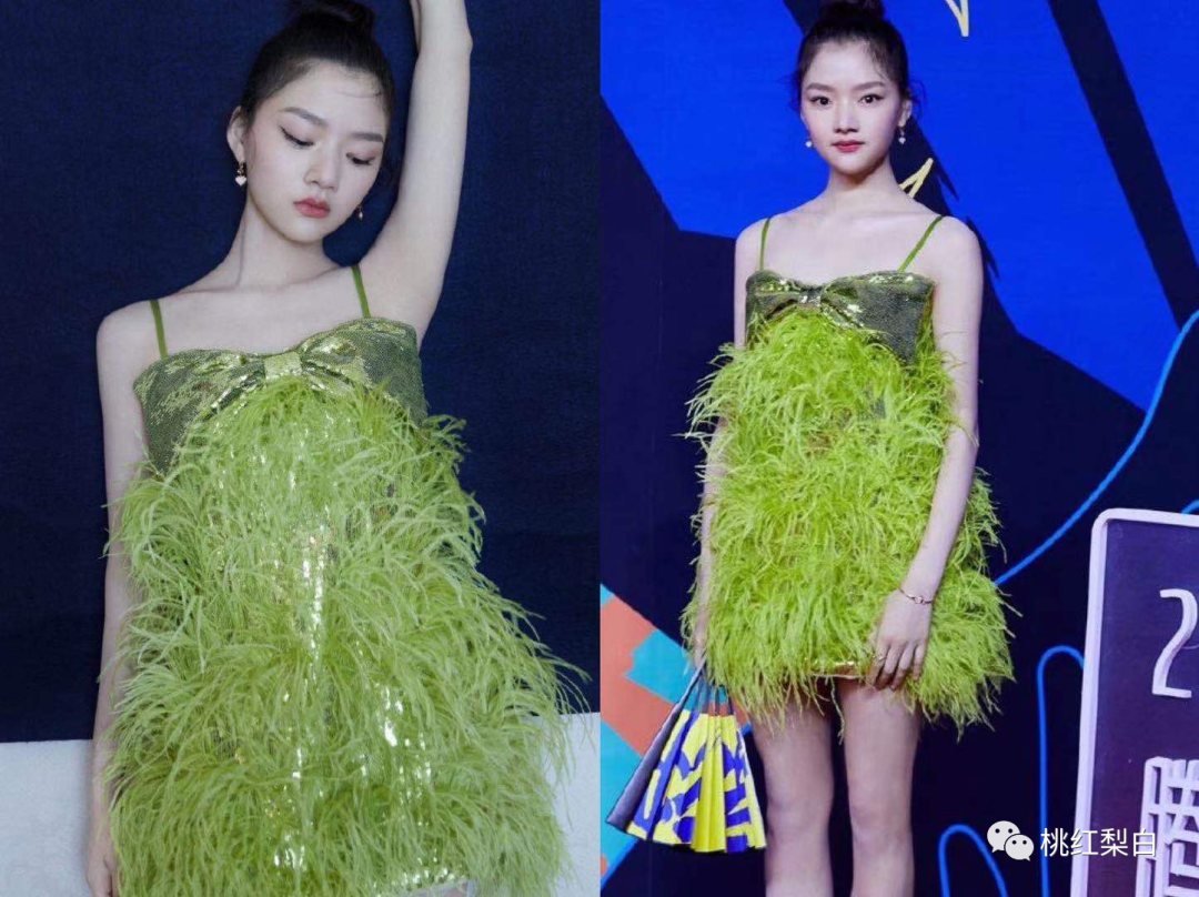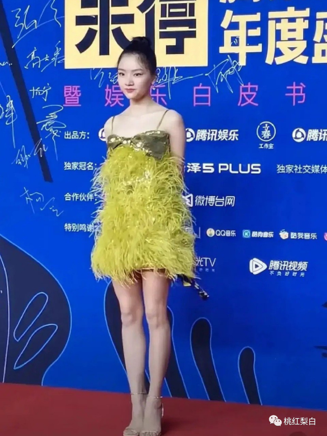 第壹眼看到這個明黃明黃的毛毛裙造型,真的忍不住有點想笑的沖動,很想替她問壹下造型師: