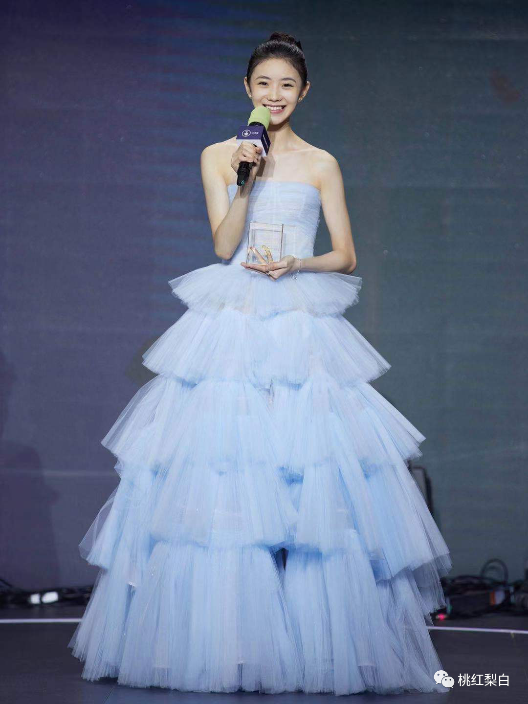選擇了壹身改良婚紗的禮服裙現身,纖細的腰身和層疊的蓬蓬裙下擺,形成了非常鮮明的對比,讓她看起來仙氣和靈動感都不缺了。