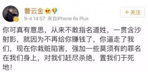 然后曹云金忍不了了……4日先发了个短微博反击了一下。