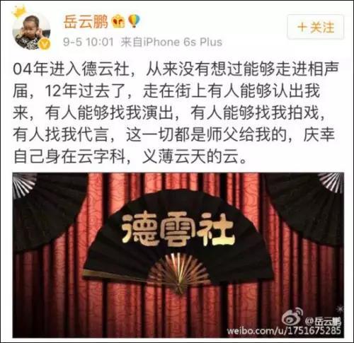 但是作为郭德纲最火的弟子岳云鹏,这个时候自然是出来煽情表忠心的 ↓