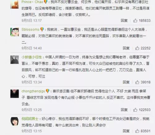 再反观曹云金那里,看上去声援者众,对比郭德纲这边稳赢。