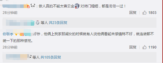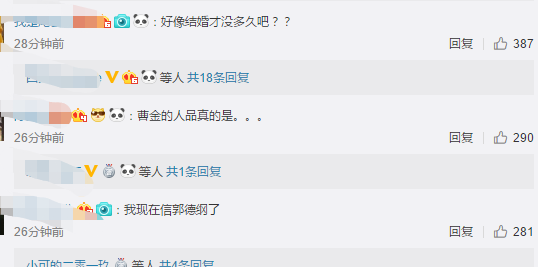 有网友评价“做人真的不能太曹云金”,还有网友称“好惨,他俩上我家那闺女的时候就有人说他俩看起来感情特不好,就连装都不装一下的那种感觉。”
