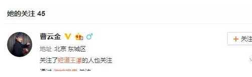 而在她的微博关注列表里,果然也有曹云金的ID。