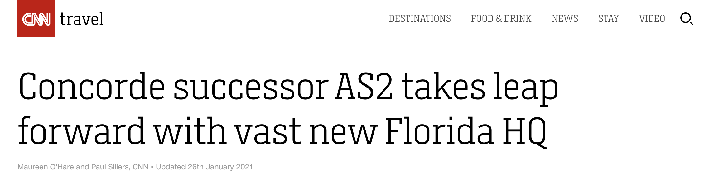 △美國有線電視新聞網CNN於當地時間1月26日報道稱,美國飛機制造商Aerion將在佛羅裡達州建立壹個全球新總部,並於2023年開始生產超音速飛機。