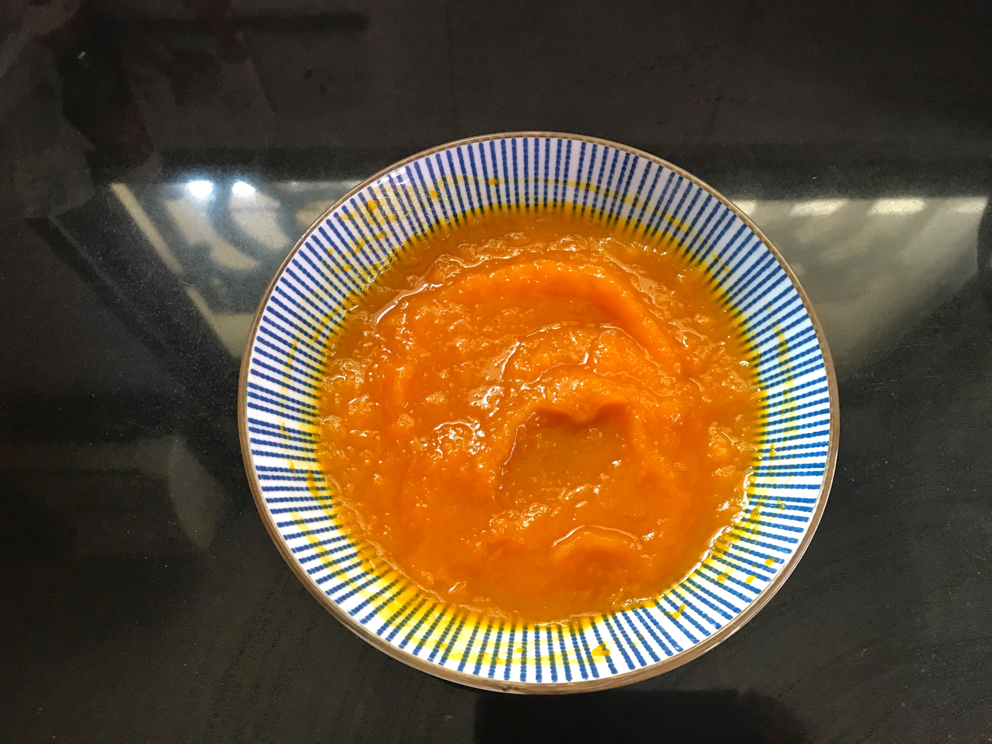 2、南瓜去皮去籽清洗幹淨後切成薄片放蒸鍋蒸熟後搗成南瓜泥後加入1克紅曲粉拌勻,加了紅曲粉的南瓜泥做出來的顏色就成橙色了。