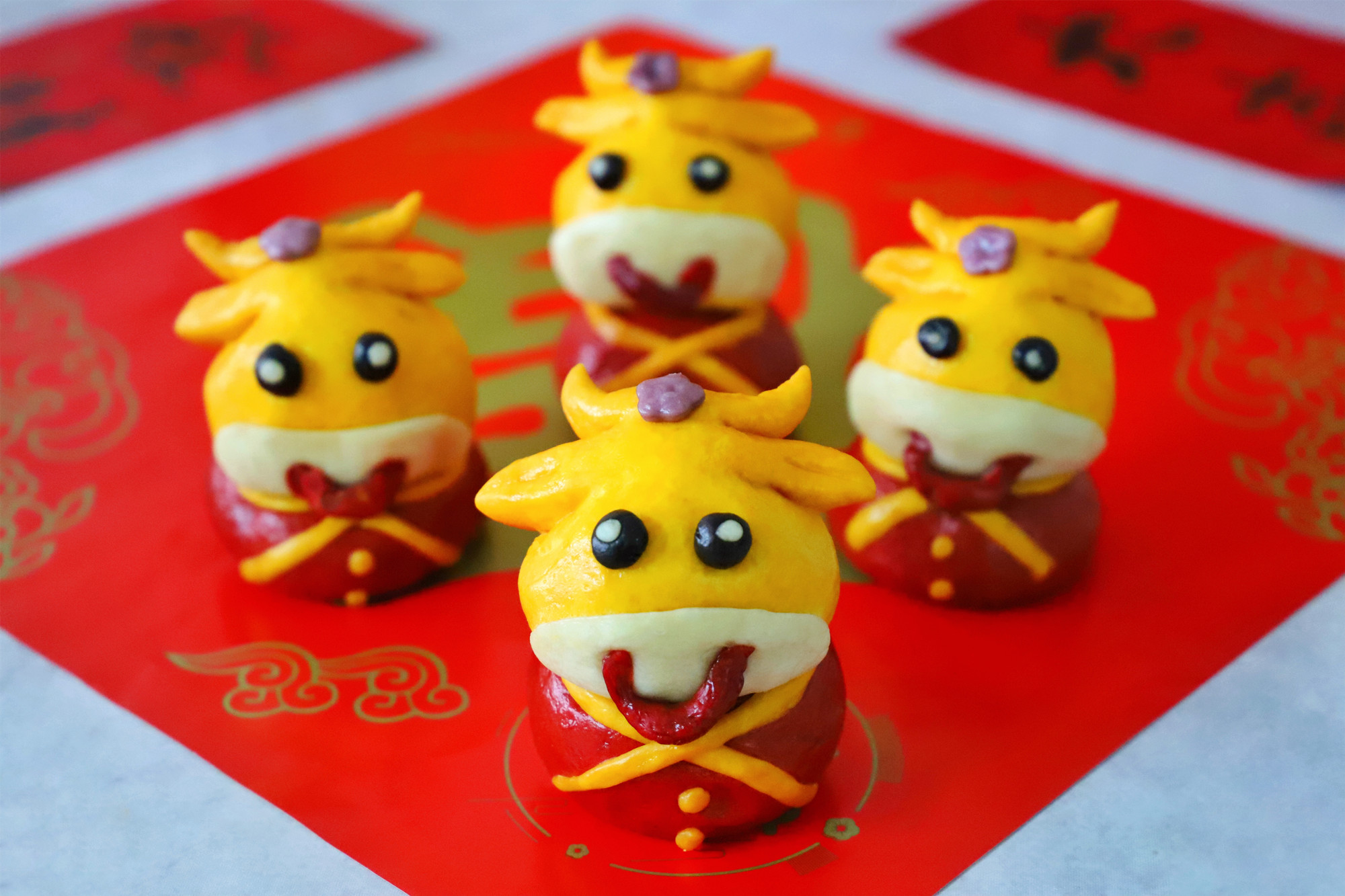 从孩子懂事起,每年到了这一天我也会应个景给孩子做些面食,今年是牛年当然要做一只有寓意的牛,所以今天就给孩子做了这个金牛,祝大家牛年大吉,牛气冲天。