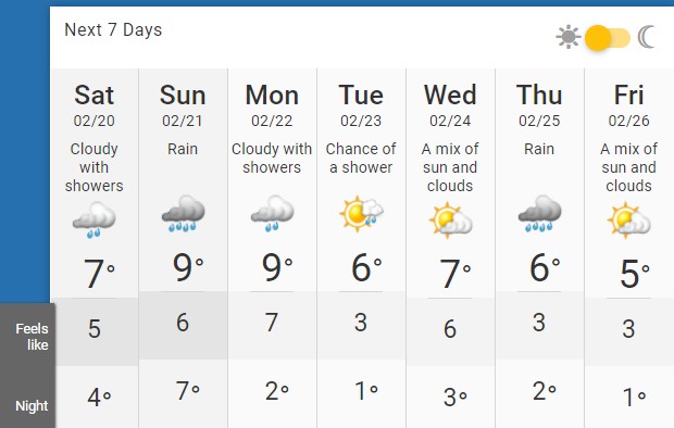 预计下一个太平洋潮湿气流会“打跑”B.C沿岸残留的北极冷空气,大温地区会出现通常较为温和的气温。