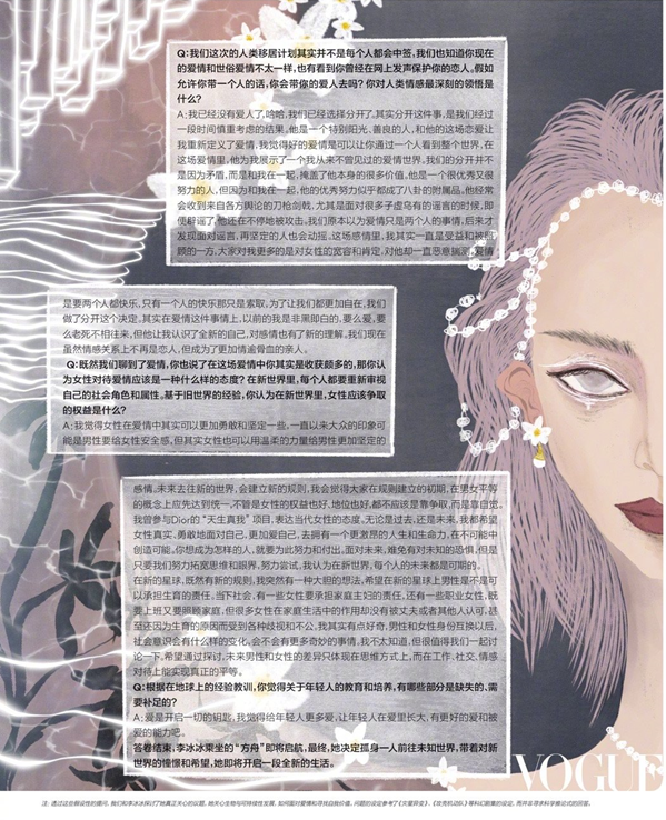 整个采访里她表达了对于对方的理解和包容,而且也表达了女性应该坚定,从恋爱观到生活态度她非常通透,格局之大。她也一直在向当代女性传递着积极的影响,展现独立女性的自立自强。同时也身体力行的起到表率作用,让大众感知女性力量和自我认同传递出来的正向价值,突破常规,打破刻板印象、呼吁女性们勇敢做自己有着助力作用,坚韧和执着,是她的魅力所在,对艺术的极致探索,是对自我的不断突破。