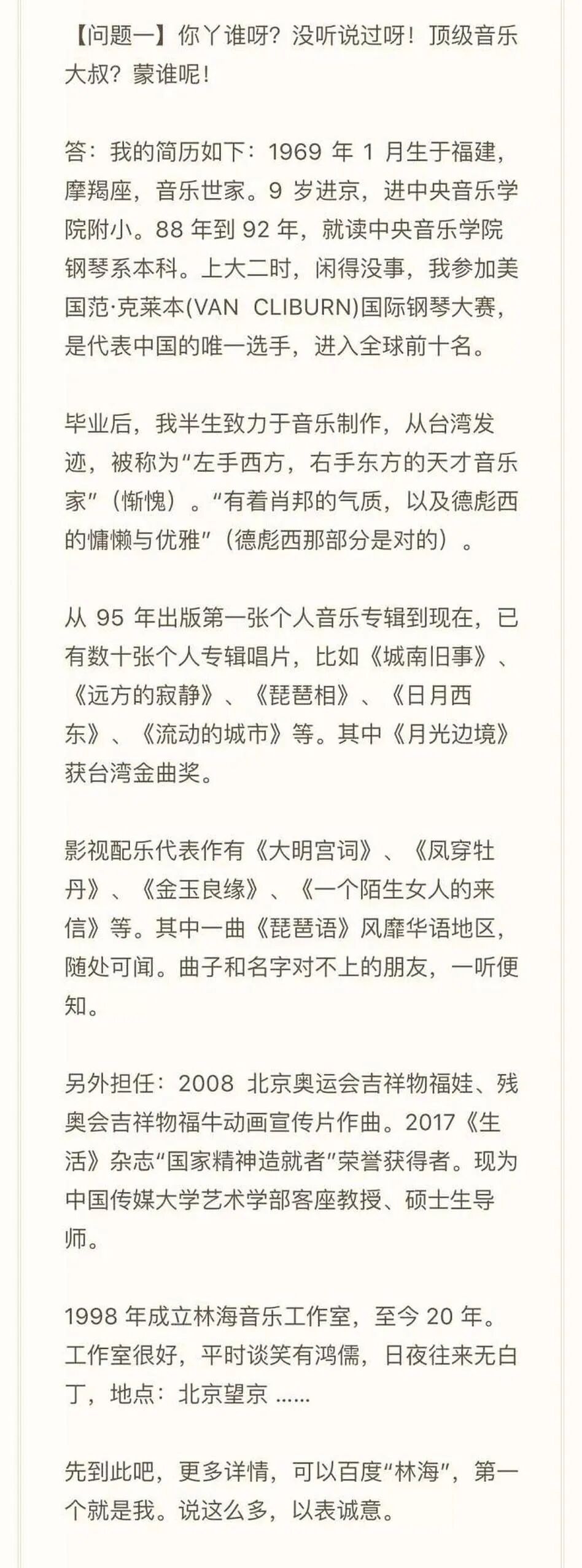 如果說光是羅列作品還不能足夠了解他的話,讓我們來看看林海當年的征婚信息是怎麼介紹自己的吧。