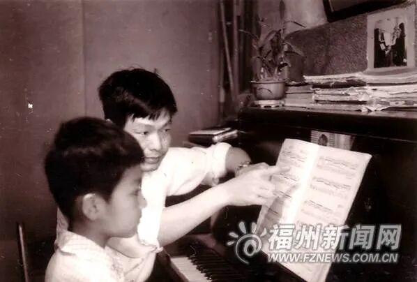 ▲ 林榮元在教年幼的林海彈琴。(圖源:福州新聞網)