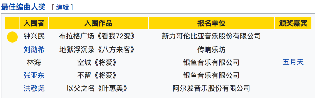 而他為王菲編曲的《空城》,還讓他入圍了第15屆台灣金曲獎最佳編曲人獎: