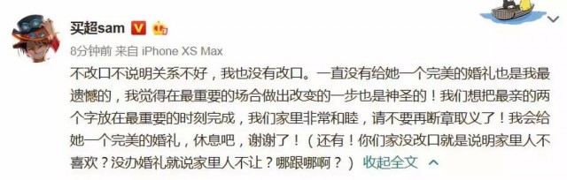 眼看著話題被網友熱議,買超站出來回應說:“不改口不說明關系不好,我也沒有改口”