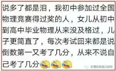 有人初中就获得过全国物理竞赛的奖项,女儿却初高中六年物理从没及格过。