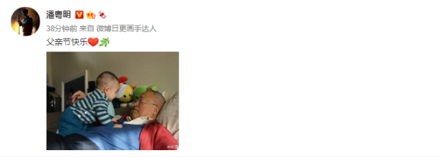6月20日,父親節,眾星紛紛發文慶祝,就在剛剛,身為爸爸的潘粵明也借此氛圍上線發文,配文道:“父親節快樂”。