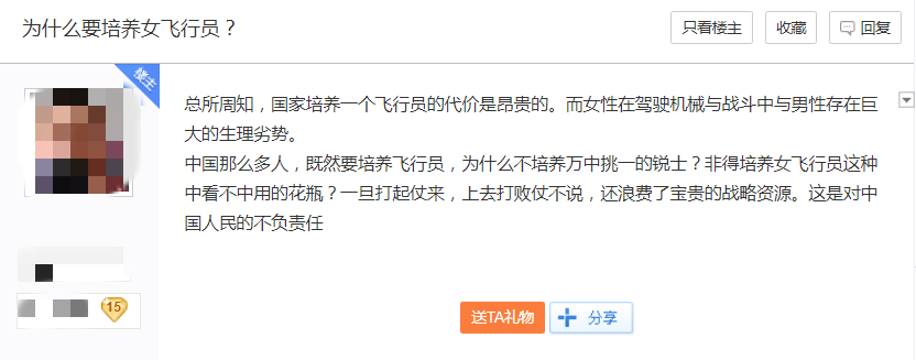 貼吧上有壹個熱門問答:“為什麼要培養女飛行員?”