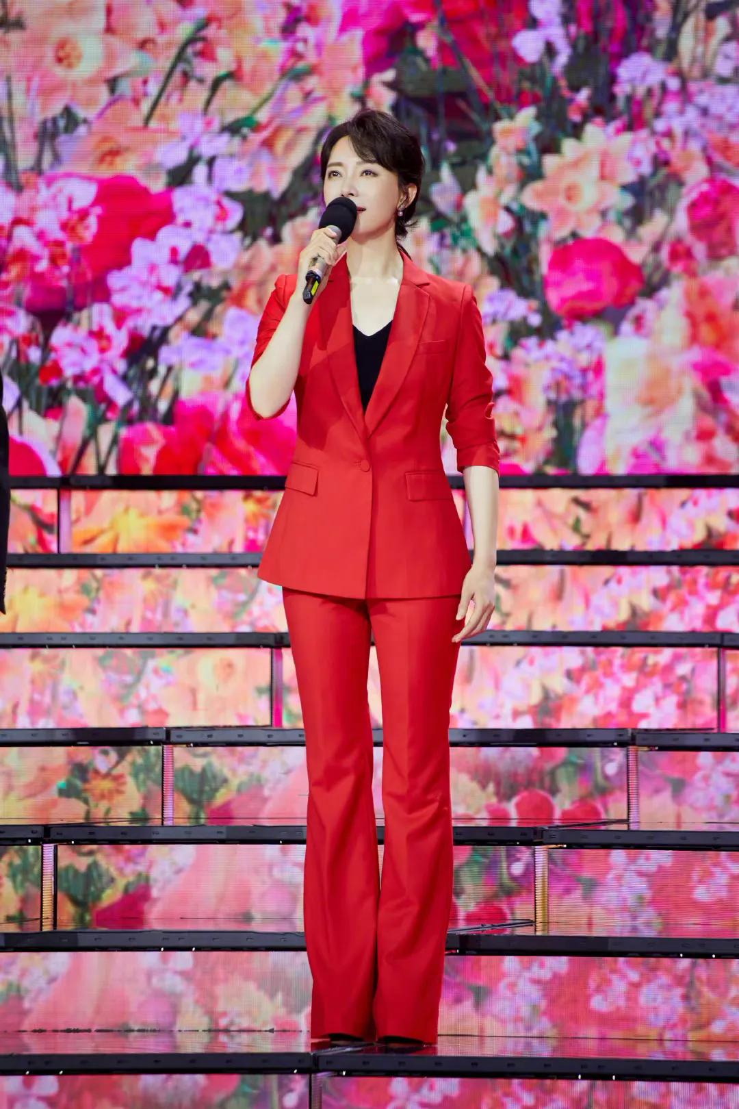 而不同於張凱麗的暗紅,42歲的劉濤選擇的是桃紅色,趁著她白皙的皮膚,這身造型格外減齡。劉濤演唱了壹首《映出紅》,根正苗紅的姐姐真的也是太正了,加上劉濤有種純天然的親切,尤其是笑起來,眉眼生花。