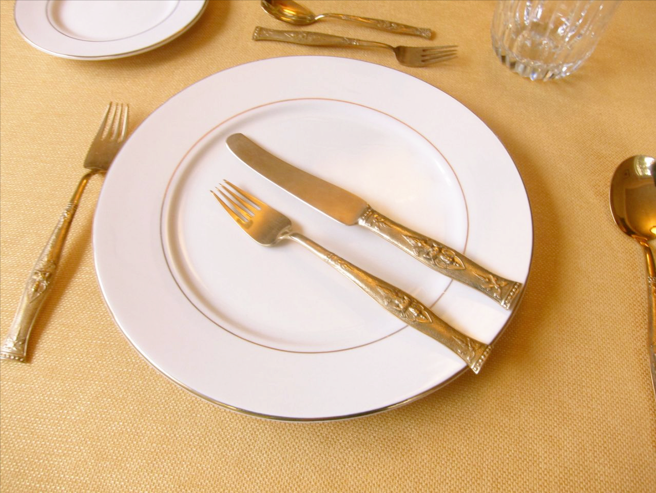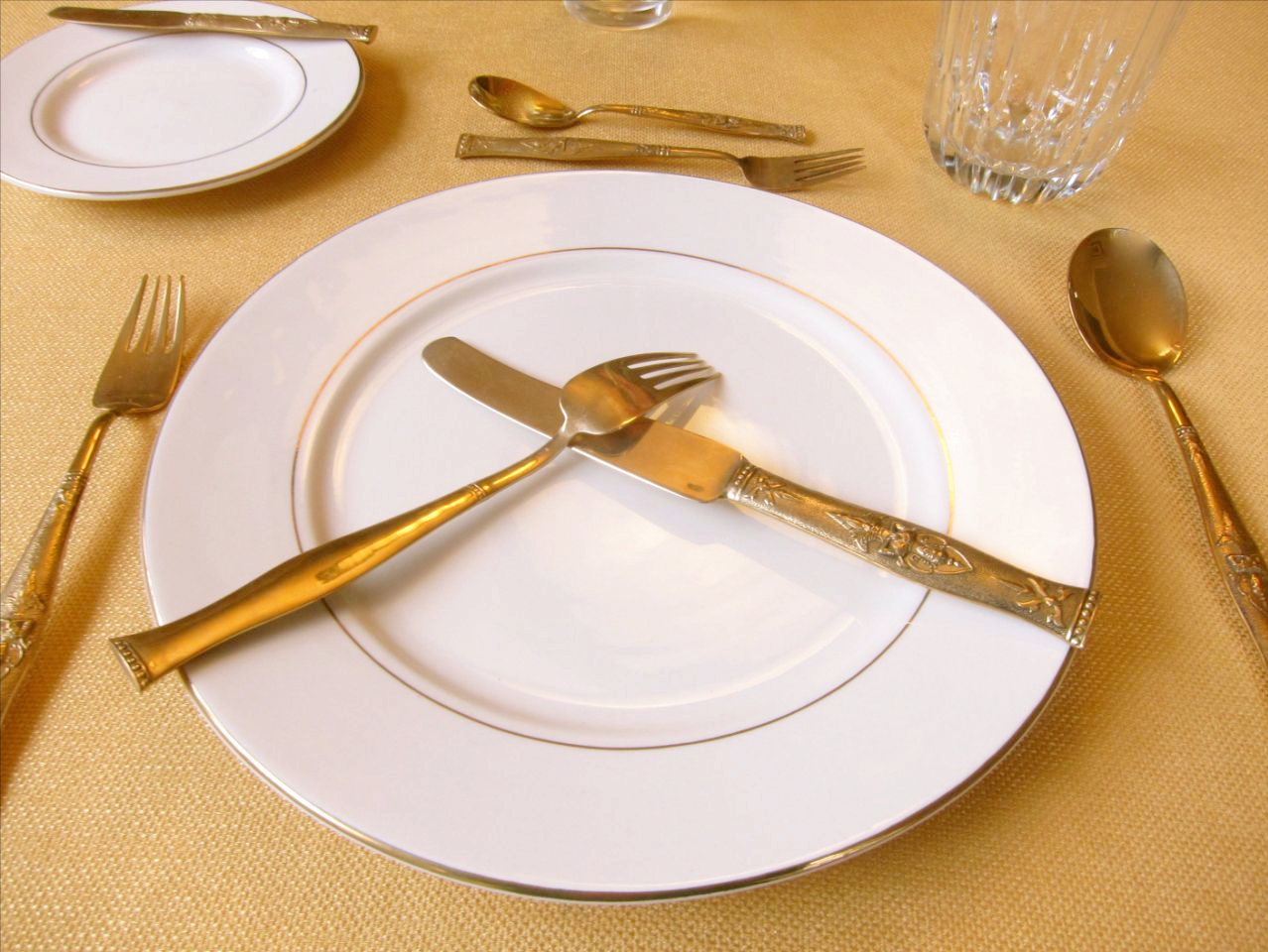 如果已經用餐完畢了,他/她會把刀叉的把手指向盤子的右下角(而不是交叉),這個表示:我已經吃完了。