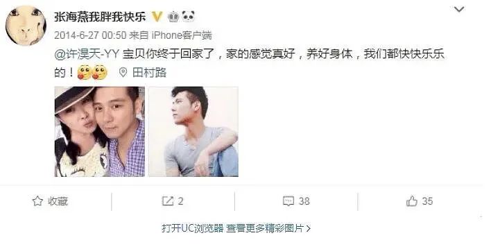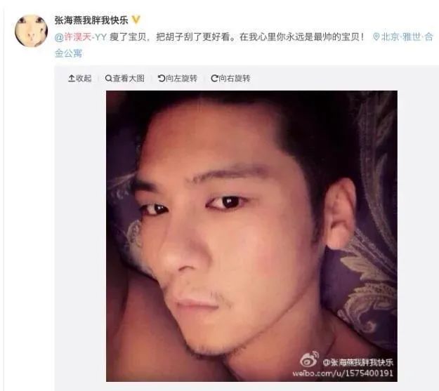 據說當時,張海燕就是在微博上看見他壹組健身照片被吸引,互相關注後走到壹起。