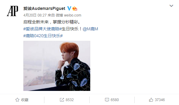 從鹿晗微博可以搜出該品牌的相關推文,他在2018年7月擔任這家品牌的首位華人(专题)品牌大使。今年肆月,該品牌曾發文為鹿晗慶生,說明鹿晗暫時沒有解約。