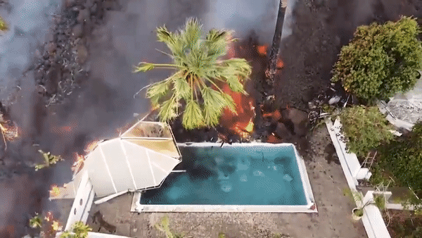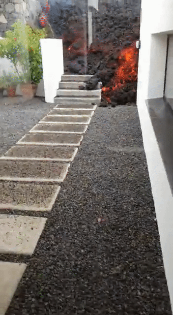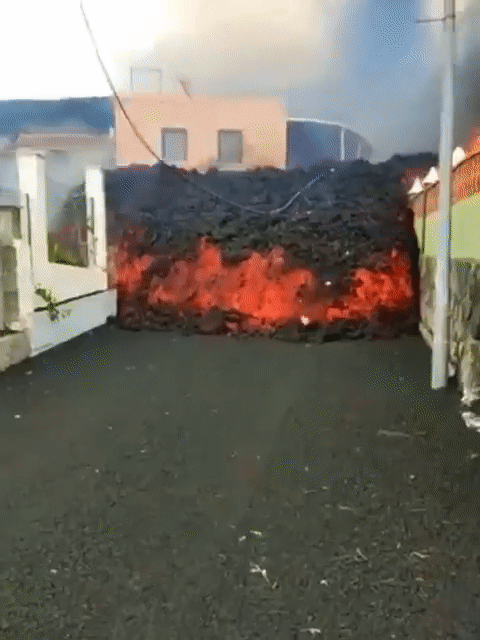 還有消防員拍攝下熔岩流經房子的視頻畫面,岩漿完全吞沒並點燃了路上的幾乎所有東西。