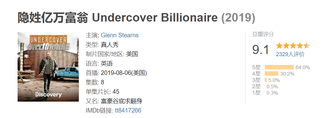 而這個真實再現如何從貧窮漢,變成價值百萬公司的總裁的過程,被拍成了真人秀《隱姓億萬富翁》,豆瓣評分也高到了9.1。人們紛紛評論: