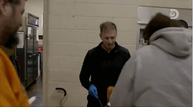 別的先不管了,先把肚子顧上再說,Glenn去做了志工,幫人打飯菜,幹完活至少能吃上壹碗熱飯。