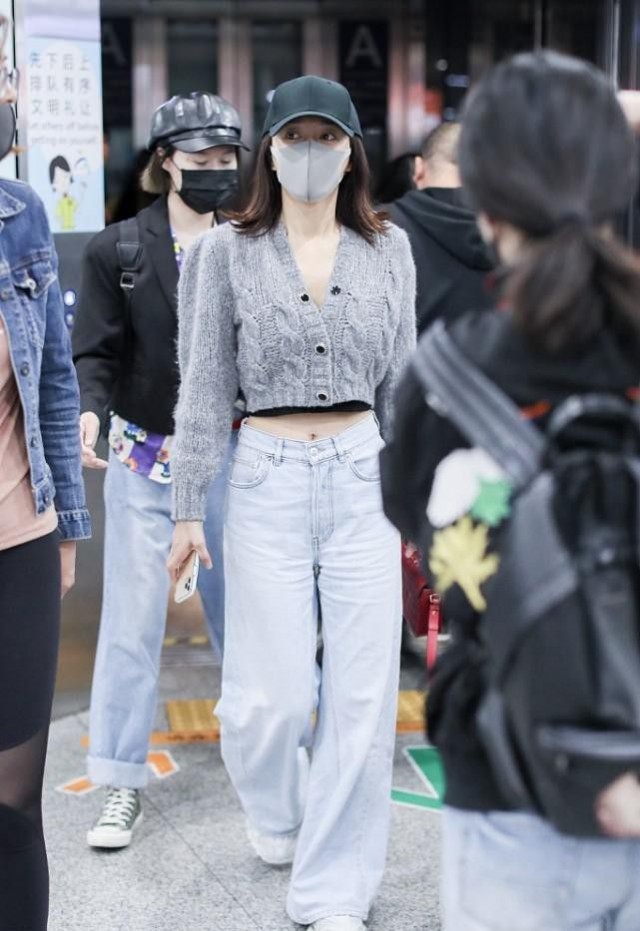 小v臉會拉長我們脖子的腰線,露出來的部分也是被稱為小蠻腰的存在,這種高腰的牛仔褲,選擇寬松壹點的,整體上的比例。感覺給人非常的好,再搭配壹個簡單的報警帽,就是女團本團的穿搭