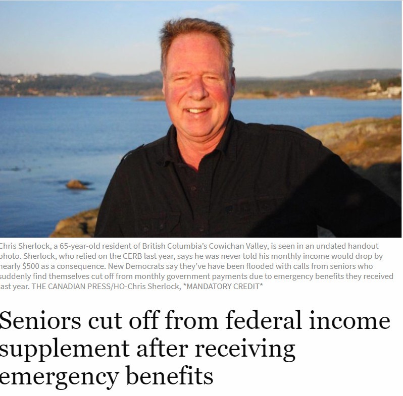 新民主黨國會議員丹尼爾·布萊基(Daniel Blaikie)致內閣部長信稱,許多領取CERB和CRB的老年人,導致失去GIS資格或要麼GIS金額減少。
