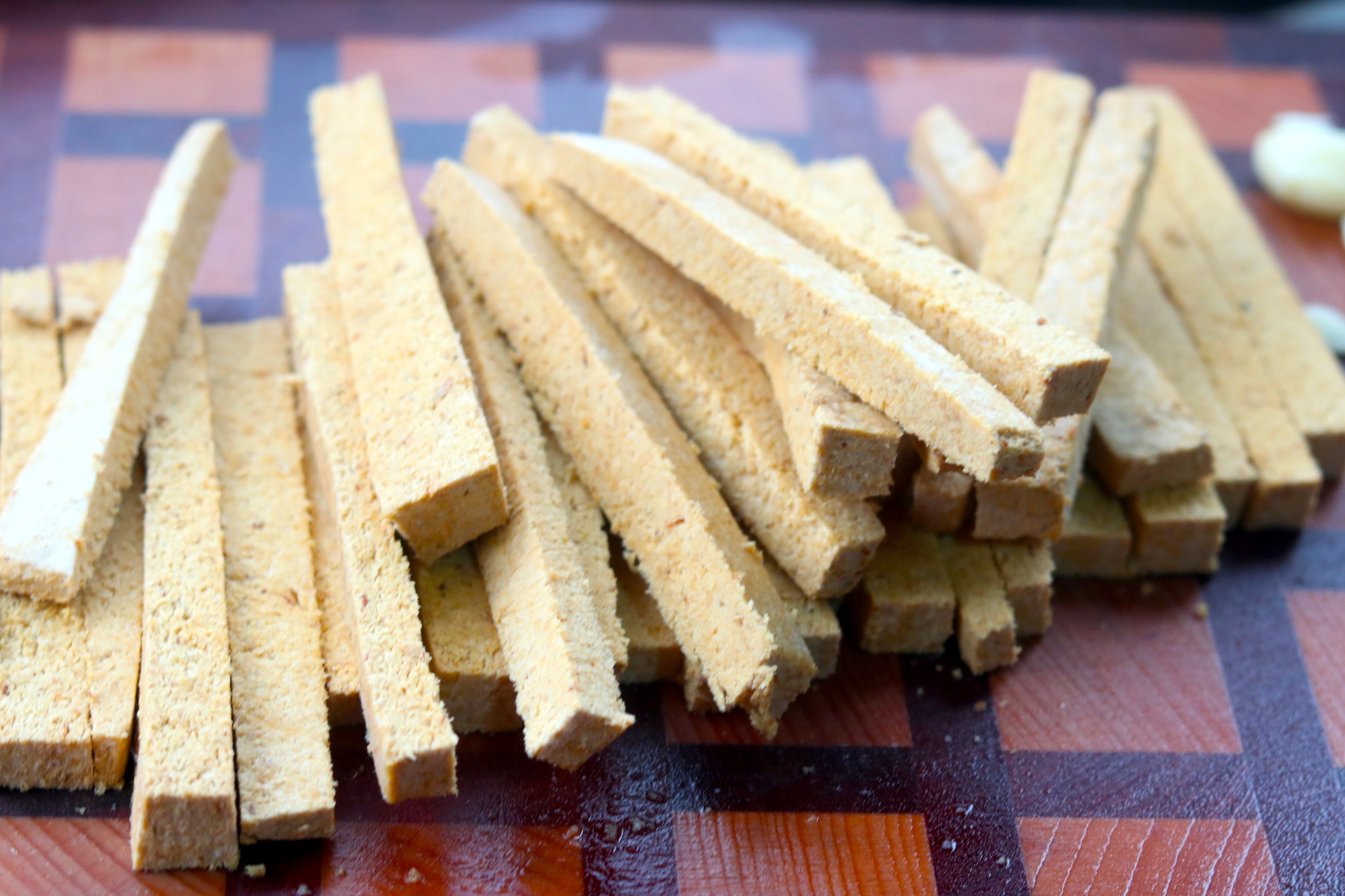 发酵好以后,拿出来切成条就可以和鱼一起炖了,有时候太多,也会切成条晒干,制作成干豆腐渣,这个发酵的时间一定要控制好,只有出现白色霉菌的时候才能吃,如果是出现黑色了的,说明豆渣炒过了,这个是不能吃的。