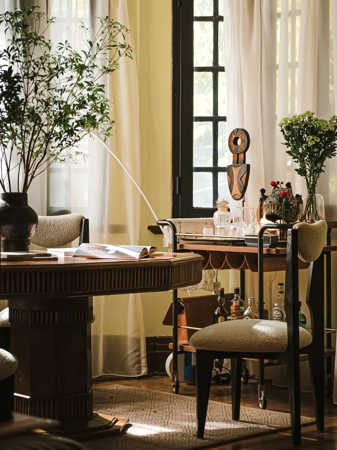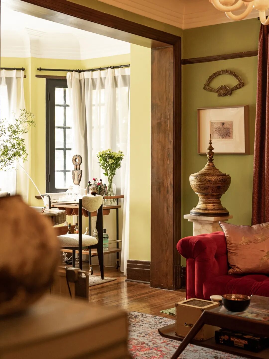 Linda說:“在尊重老房子的前提下,我並沒有做任何結構上的改動。只是把客廳的牆面粉刷成了苔綠色,這樣能把原本就在客廳的木頭老櫃子摁進去,不會顯得很突兀。