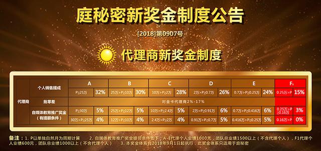 據悉,"TST 庭秘密 " 代理工資分為叁部分:個人銷售提成、代理差額提成、教育基金。這裡假設團隊業績 15 萬,個人業績 1000 元。其中個人銷售提成部分,若整個團隊的業績達到 15 萬,個人業績的提成比例為 30%:1000x30%=300 元。代理差額提成是整個團隊的業績減去個人的業績為差額,再按 15%(30%-15%=15%)提成:(150000-1000)x15%=22350 元;教育獎金按整個團隊的業績乘以 5%,150000x5%=7500 元。所以按照庭秘密的獎金制度計算,最終實際到手 300+22350+7500=30150 元。