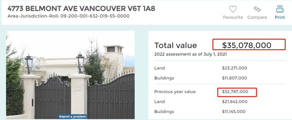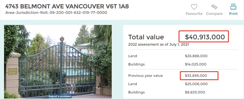 這棟豪宅去年4月以4200萬成交,成為2021年大溫成交價最高的豪宅,也是大溫有史以來成交價最高的豪宅。