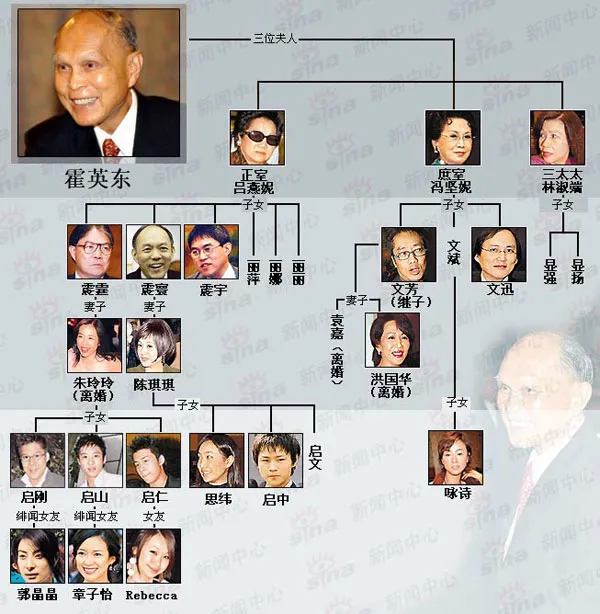 經常在新聞上見到的霍啟剛就是長子霍震霆的兒子。具體族譜可以看這張圖:
