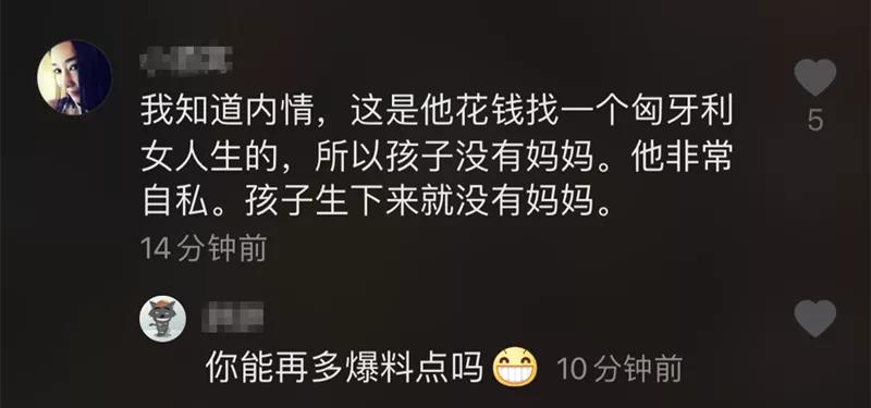 在評論中爆料稱這是張紀中花錢找壹個匈牙利女人生的。