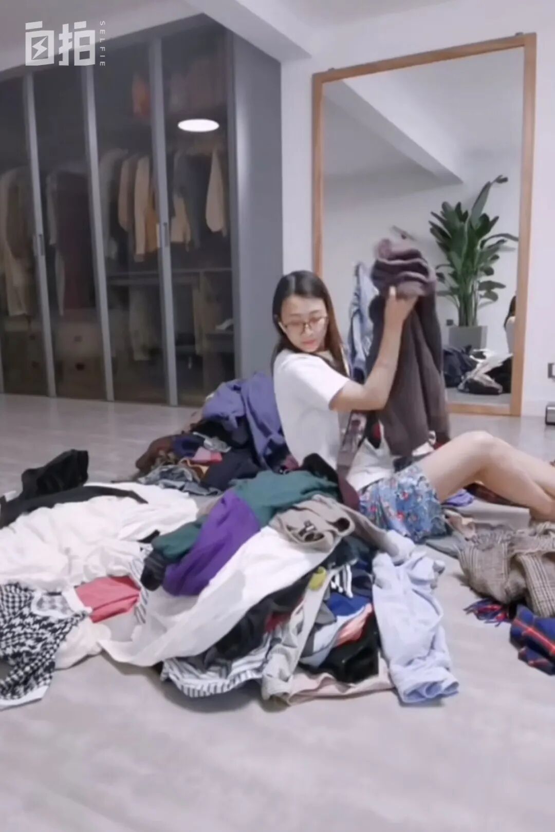 地板上是我准備處理掉的衣服,後面衣櫃裡還掛著很多。