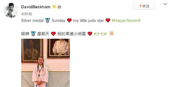 為此身為老父親的貝克漢姆還發動態曬娃,稱小柒是自己的驕傲。