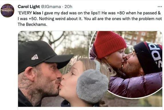 與此同時貝克漢姆與女兒的過度親昵也成了負面新聞!每壹張合影中貝克漢姆都會親吻女兒。