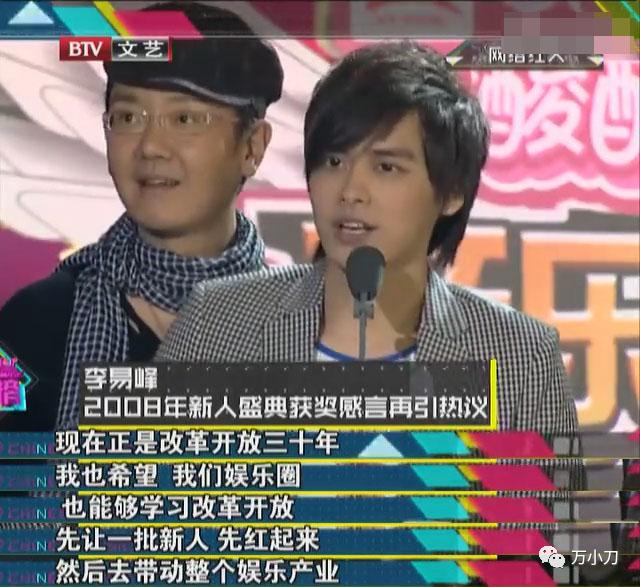 2008 年,21 歲的李易峰拿下 " 首屆蒙牛酸酸乳音樂風雲榜 " 的 " 最佳新人 EP 獎 "。主持人讓他發表壹下獲獎感言,沒想到李易峰竟然來了這麼壹段: