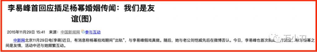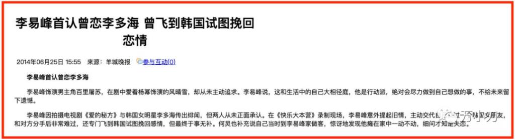 可萬萬沒想到的是,這段沒什麼人關注的 " 緋聞 ",反而是李易峰目前為止唯壹壹段承認過的真戀情。