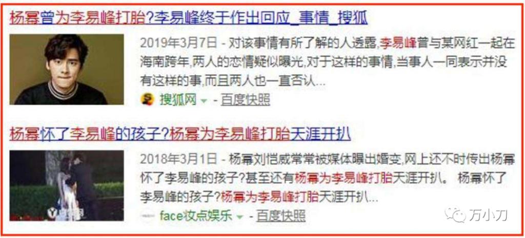 其中最離譜的壹種,居然聳人聽聞地說 " 楊冪為李易峰打胎 "。