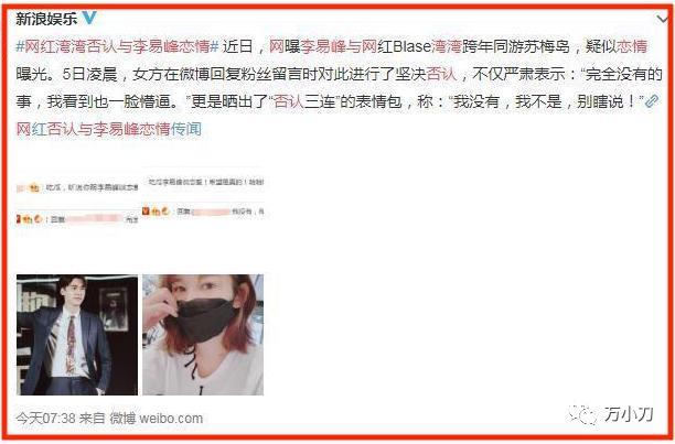 所有人看到這兩個不協調的名字放在壹起,就知道這又是壹次 " 碰瓷營銷 "。果然,瓜還沒吃完,網紅 " 灣灣 " 就立馬出來否認戀情,還表示自己也是壹臉懵。