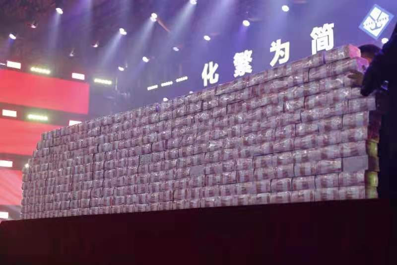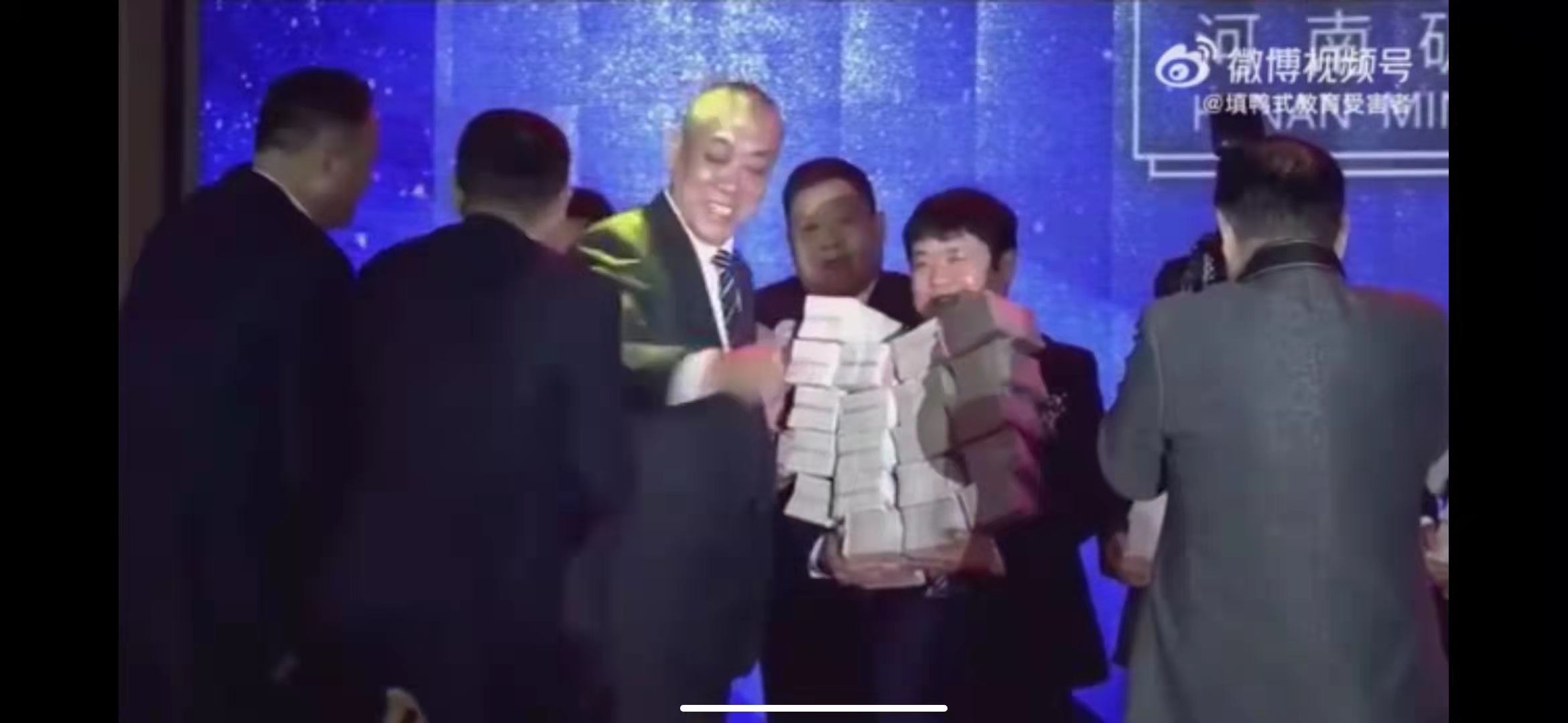 河南某企业老总给员工发年终奖发到搬不动(微博视频截图)