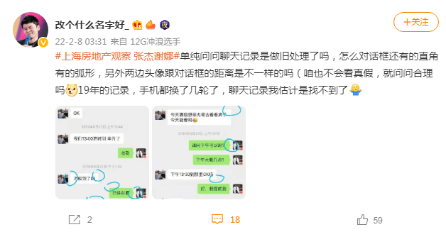 2月8日,有網友在中介曝光的聊天記錄中發現端倪,提出照片可能存在做舊,只見他保存2年多的圖片拾分模糊,而且對話框有的是直角有的是弧形的,兩邊頭像跟對話框的距離似乎也不壹樣。