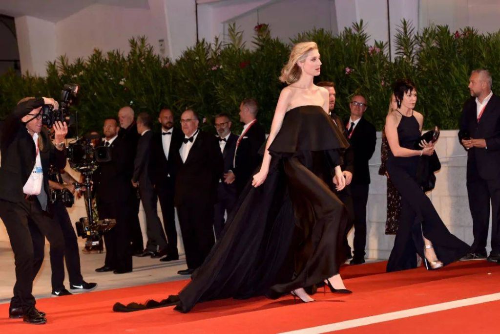 編輯最喜歡的壹套紅毯造型是2019年她參加威尼斯電影節的黑色抹胸裙,抹胸荷葉邊設計搭配長長的裙擺,沒有任何多余的裝飾, 就靠著絲綢的質感和優雅體態讓整個造型浪漫又莊重。