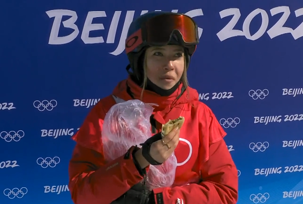 北京时间2月14日消息,冬奥会自由式滑雪女子坡面障碍技巧资格赛,谷爱凌首轮出现失误,仅得57.28分。但第二轮,谷爱凌表现出色,79.38分,晋级稳了,她开心吃饼庆祝。现场欢呼一片,央视解说盛赞,“漂亮!完美!”